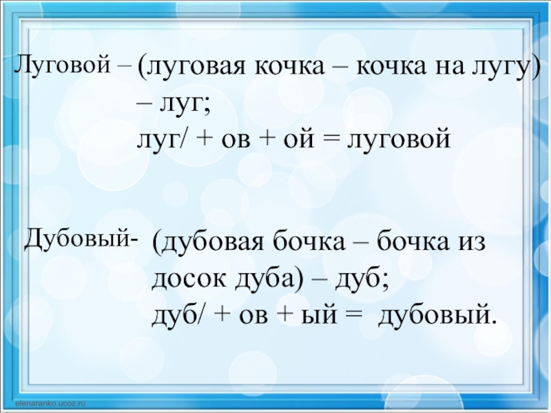 луг/ + ов + ой = луговой