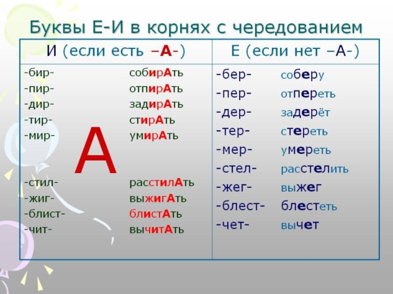 Презентация, доклад по русскому языку на тему Чередование букв Е//И в корнях