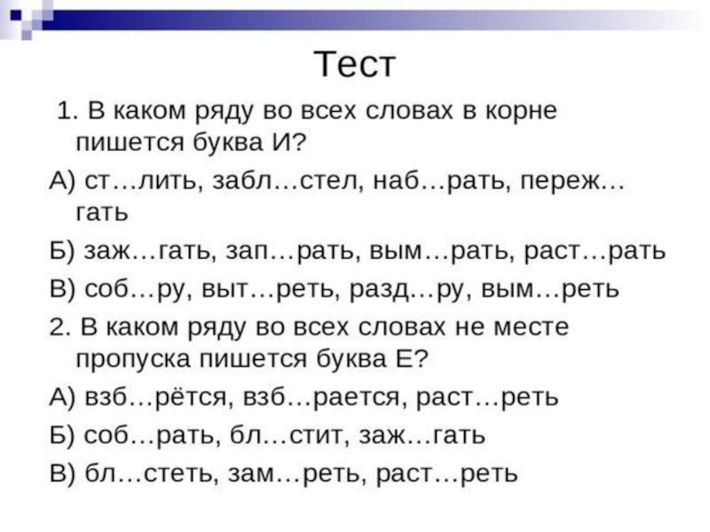 Презентация по русскому языку на тему Чередование букв Е//И в корнях Русский язык