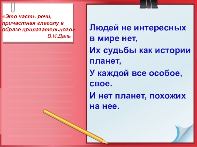«Это часть речи, причастная глаголу в образе прилагательного»