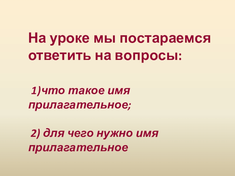 Слайд 4На уроке мы постараемся ответить на вопросы: 1)что такое имя прилагательное;