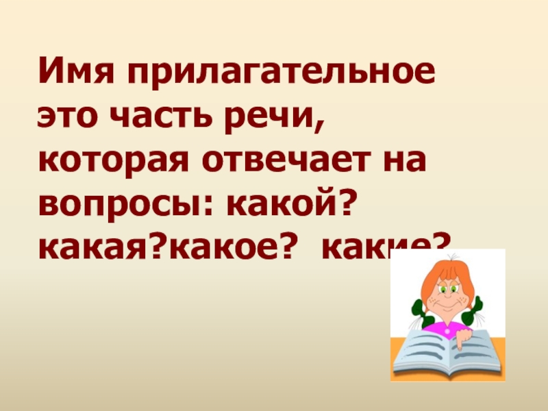 Слайд 10Имя прилагательное это часть речи, которая отвечает на вопросы: какой?какая?какое? какие?