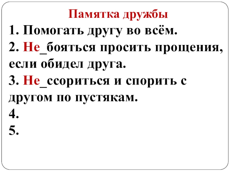 3. Не_ссориться и спорить с другом по пустякам.