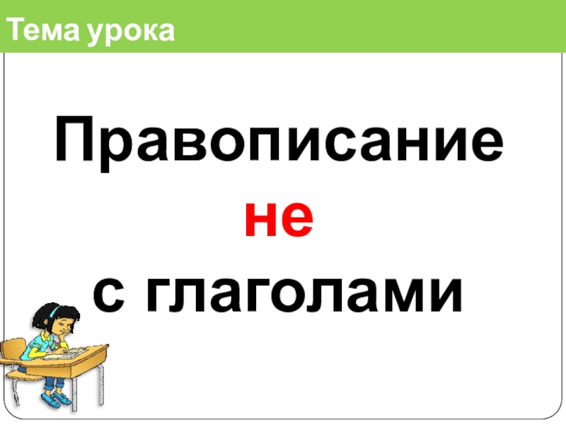 Тема урока Правописание не с глаголами
