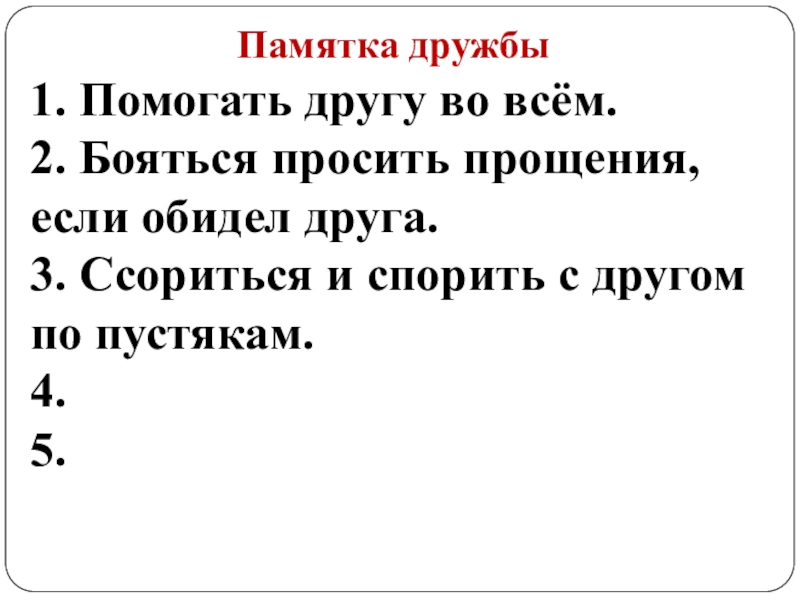 Памятка дружбы1. Помогать