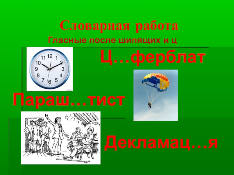 Словарная работа        Гласные после шипящих и ц