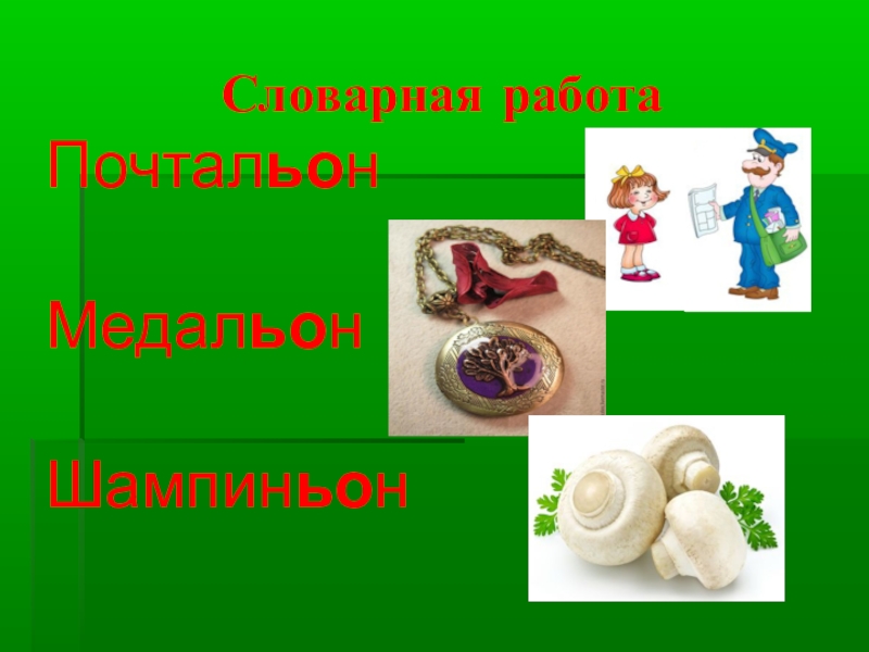Словарная работа ПочтальонМедальонШампиньон