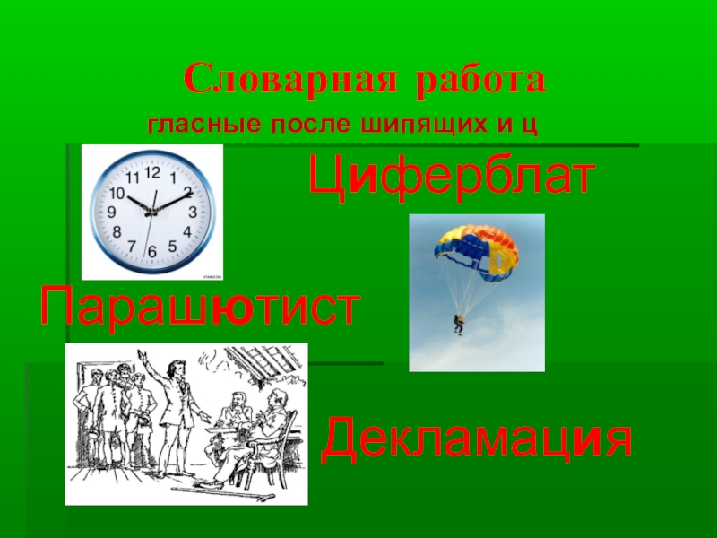 Словарная работа        гласные после шипящих и ц