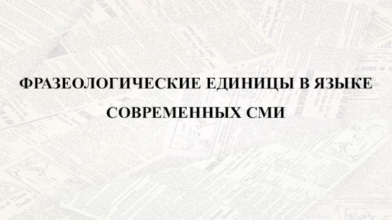 Слайд 1ФРАЗЕОЛОГИЧЕСКИЕ ЕДИНИЦЫ В ЯЗЫКЕ СОВРЕМЕННЫХ СМИ