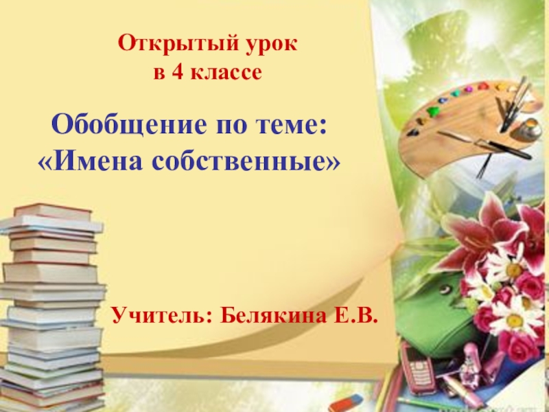 Открытый урок в 4 классеОбобщение по теме: «Имена собственные»Учитель: Белякина Е.В.