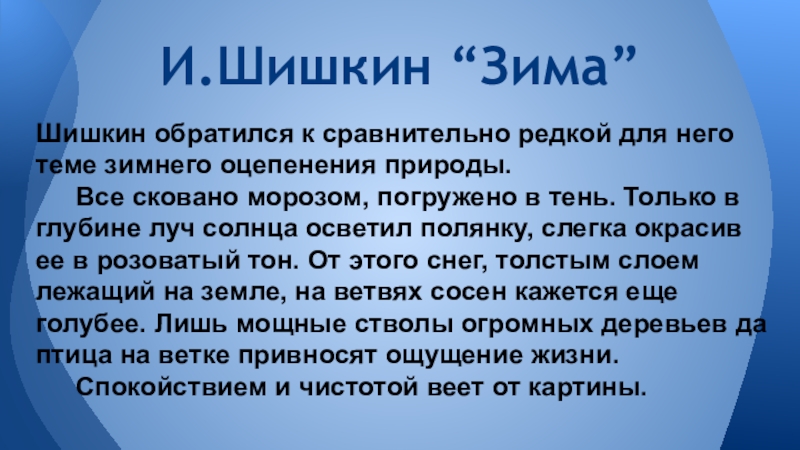 И.Шишкин “Зима”