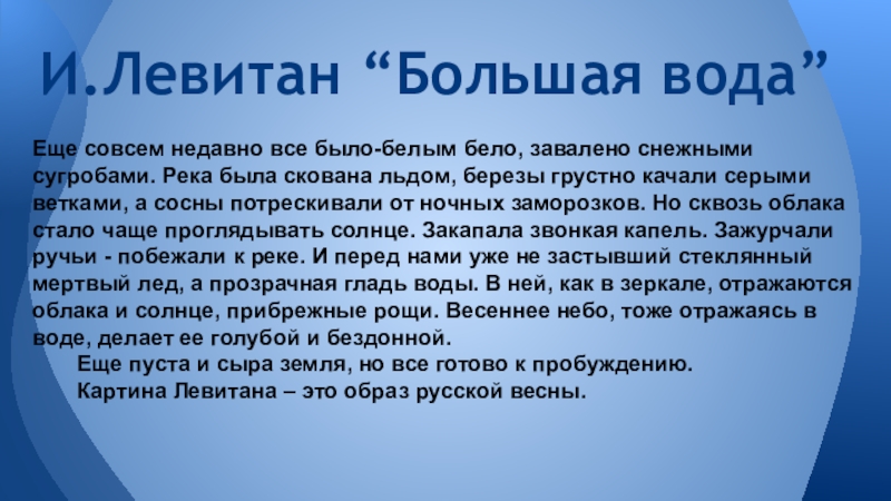 И.Левитан “Большая вода”