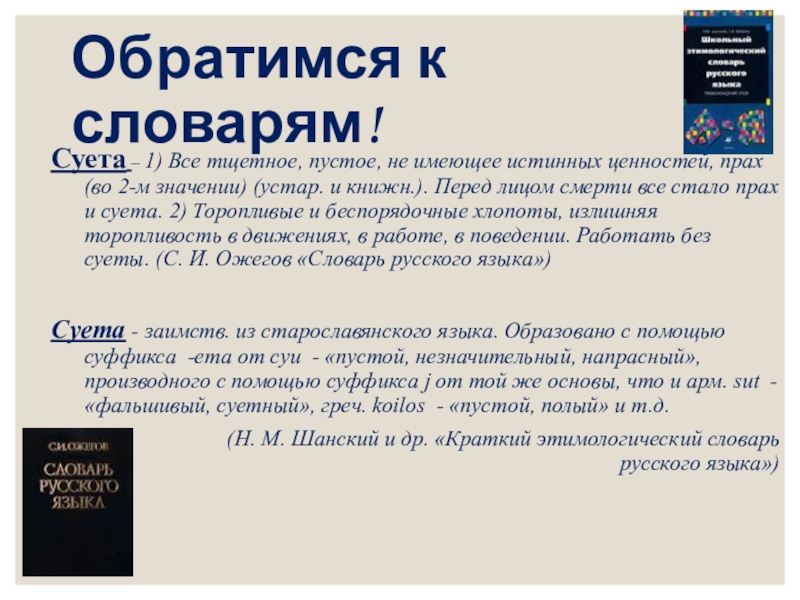 Суета – 1) Все тщетное, пустое, не имеющее истинных