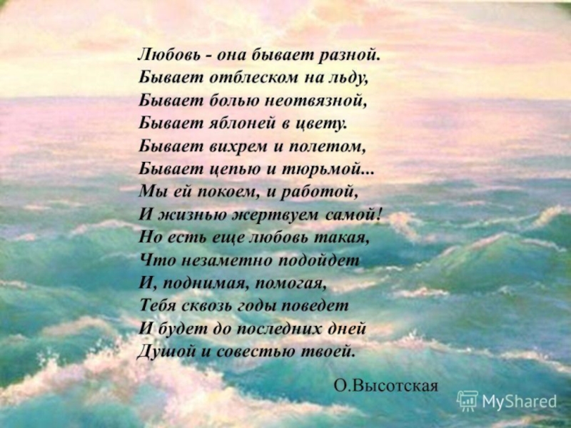 чувств на земле, и она неповторима и вечна, как жизнь.