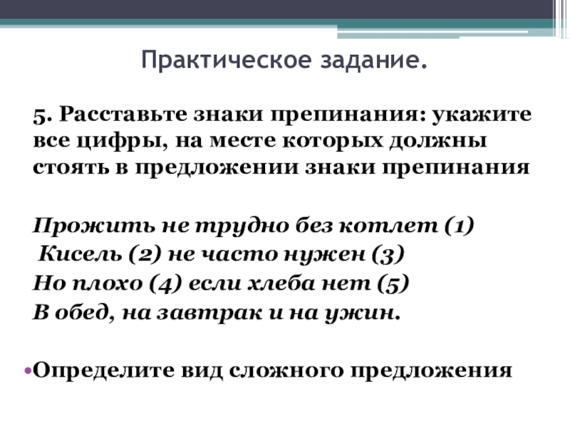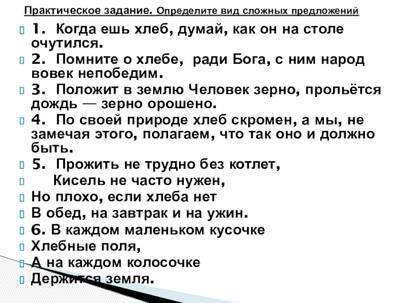 Практическое задание. Определите вид сложных предложений