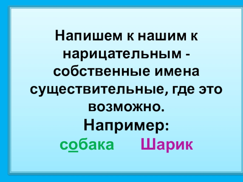 Слайд 29Напишем к нашим к нарицательным - собственные имена существительные, где это
