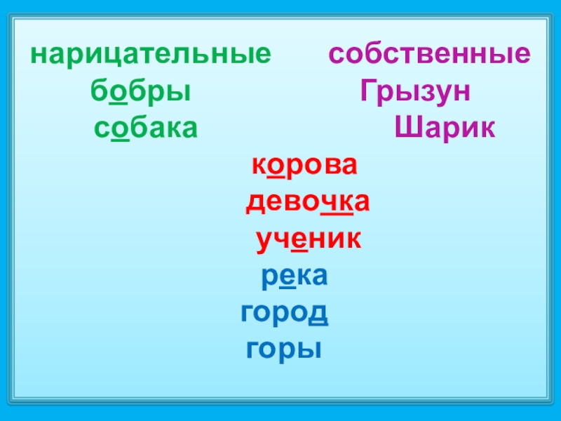 Слайд 1 «Собственные и нарицательные имена существительные» 2 класс