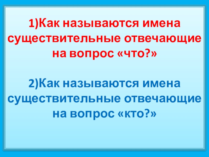 1)Как называются имена существительные отвечающие на вопрос «что?»  2)Как называются имена существительные отвечающие на вопрос