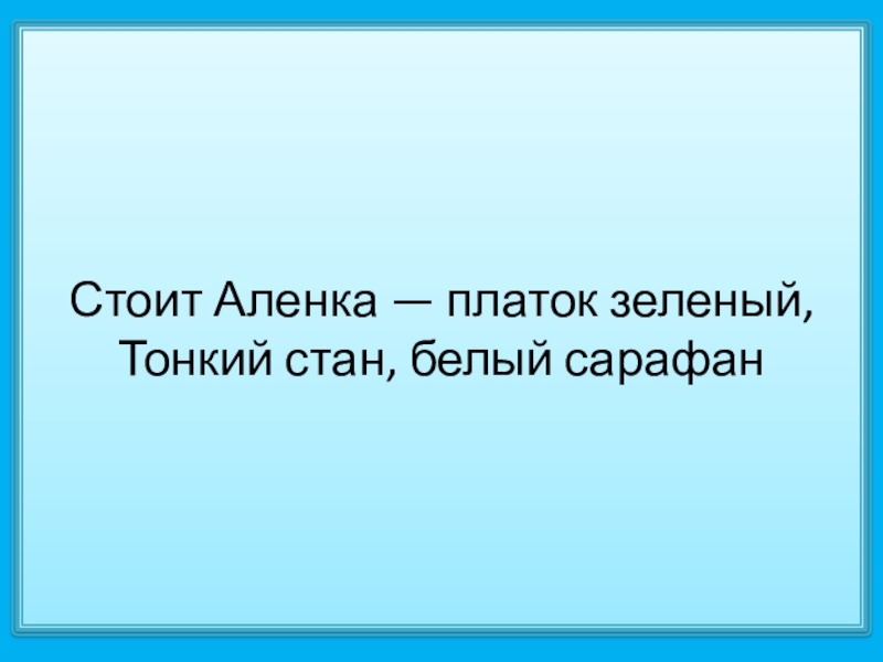 Слайд 10Стоит Аленка — платок зеленый, Тонкий стан, белый сарафан
