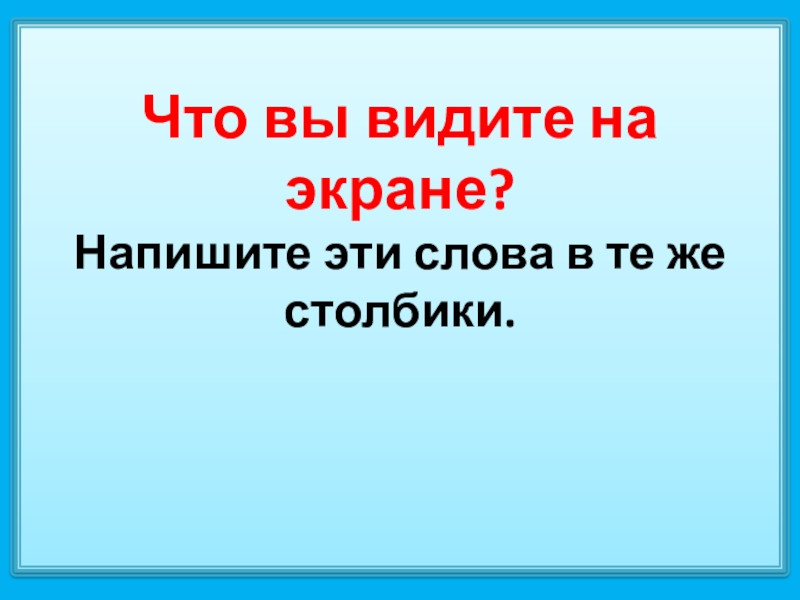 Слайд 16 Что вы видите на экране? Напишите эти слова в те же столбики.