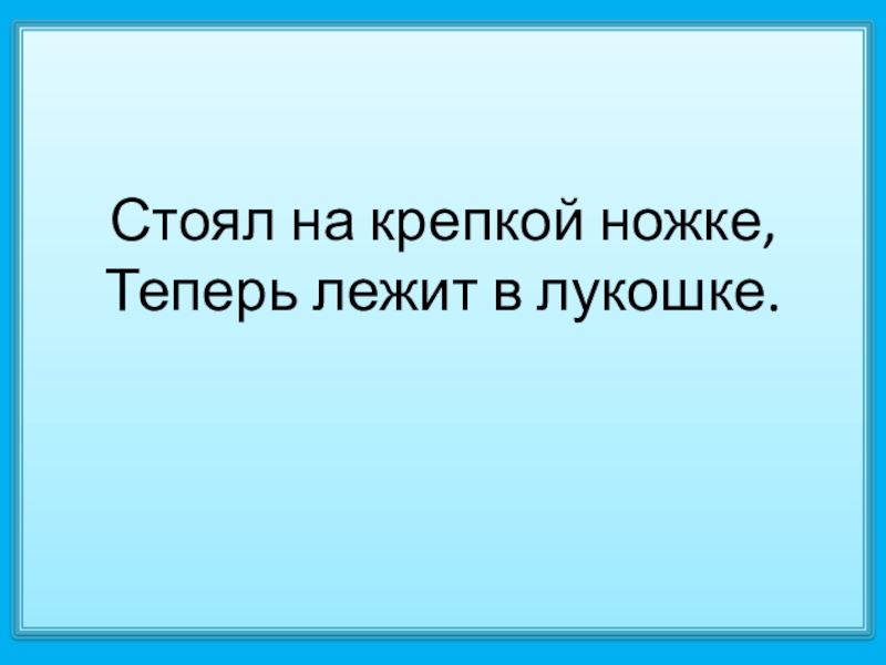 Слайд 12Стоял на крепкой ножке, Теперь лежит в лукошке.