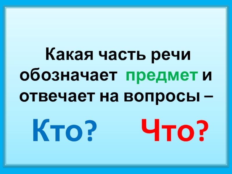 Какая часть речи  обозначает предмет и отвечает на вопросы –  Кто?