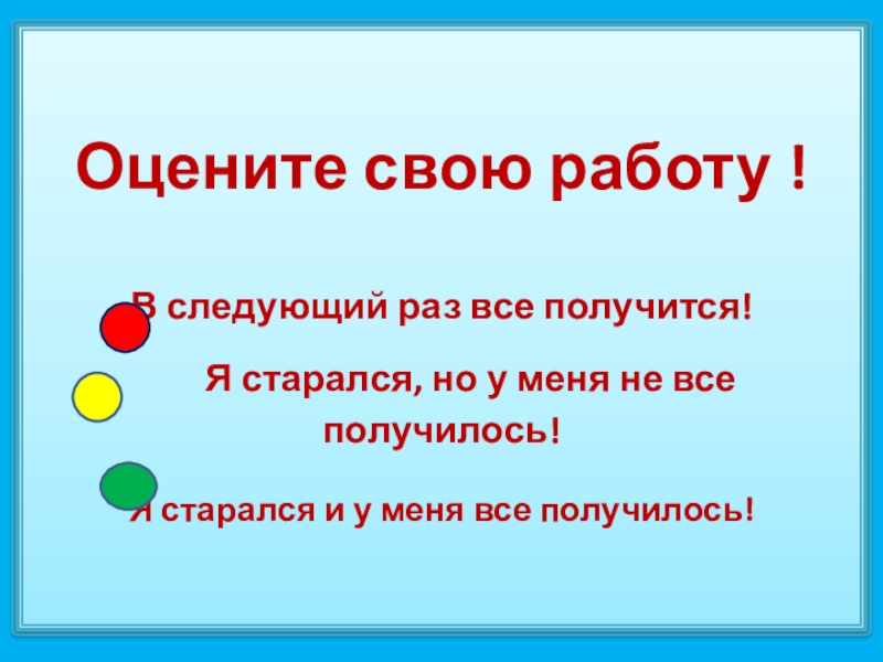 Слайд 33Оцените свою работу ! В следующий раз все получится! Я старался,