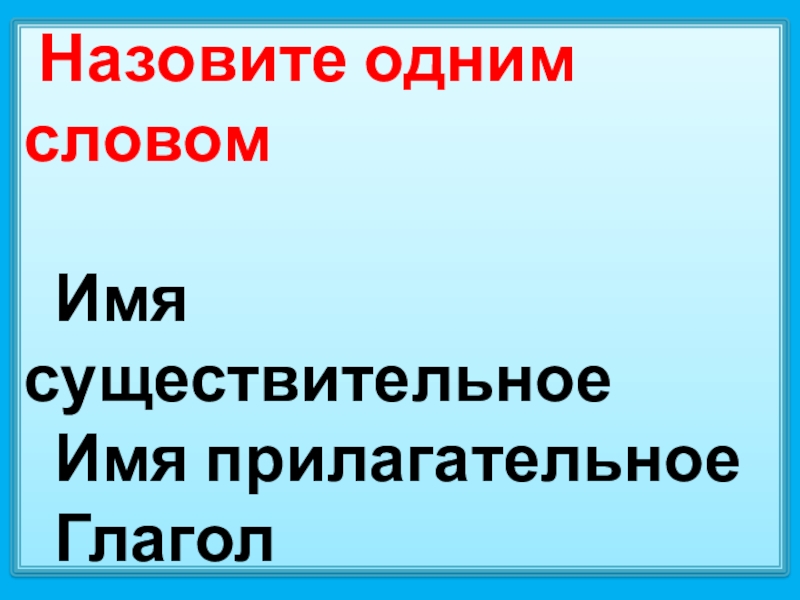 Назовите одним словом    Имя существительное  Имя прилагательное  Глагол