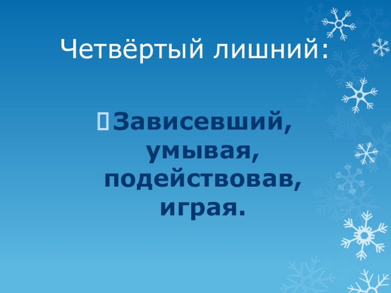 Четвёртый лишний:Зависевший, умывая, подействовав, играя.
