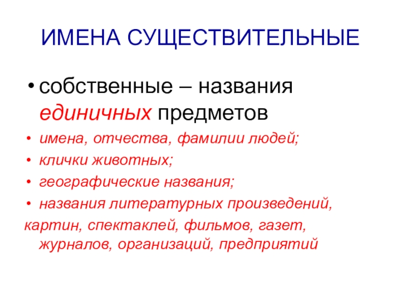 Слайд 4ИМЕНА СУЩЕСТВИТЕЛЬНЫЕ