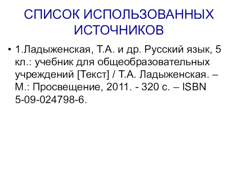 1.Ладыженская, Т.А. и др. Русский язык, 5 кл.: учебник