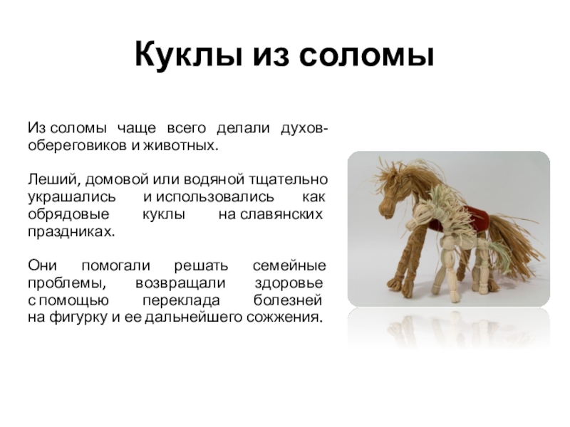 В языческой Руси вырезали божков из дерева, создавали тряпичные и соломенные куклы-обереги.
