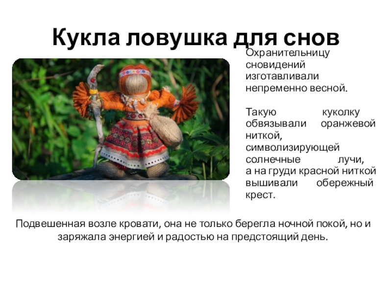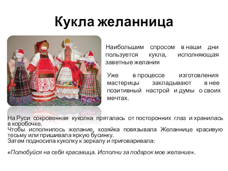 Уже в процессе изготовления мастерицы закладывают в нее позитивный настрой и думы о своих мечтах.