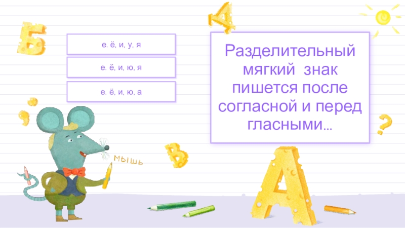 Разделительный мягкий знак пишется после согласной и перед гласными…
