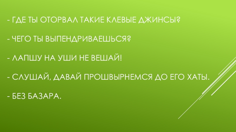 Слайд 5- Где ты оторвал такие клевые джинсы?