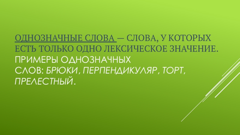Слайд 9Однозначные слова — слова, у которых есть только одно лексическое значение.