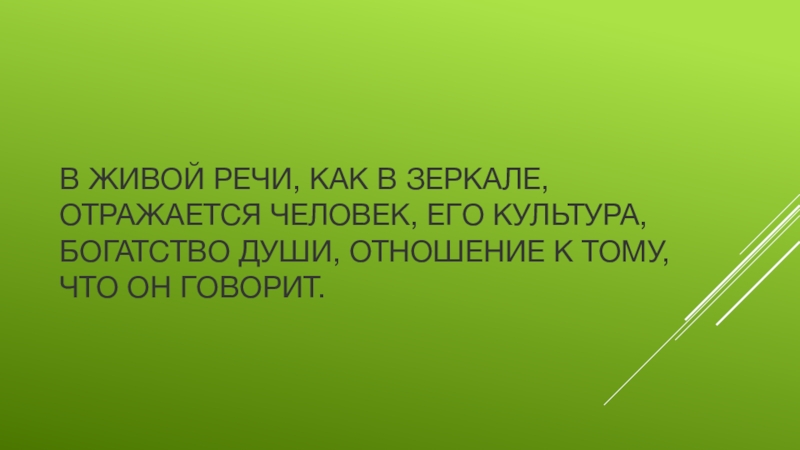 Слайд 6в живой речи, как в зеркале, отражается человек, его культура, богатство