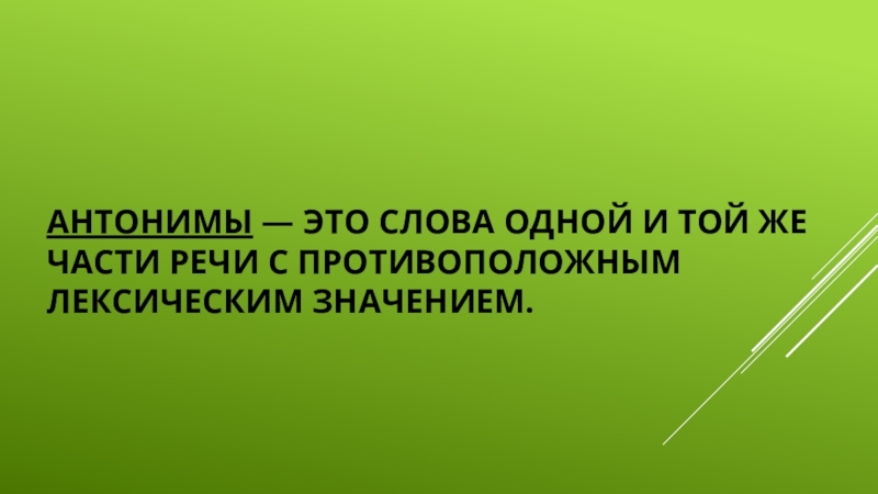 Слайд 15Антонимы — это слова одной и той же части речи с противоположным