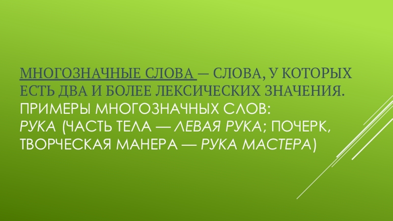 Слайд 10Многозначные слова — слова, у которых есть два и более лексических