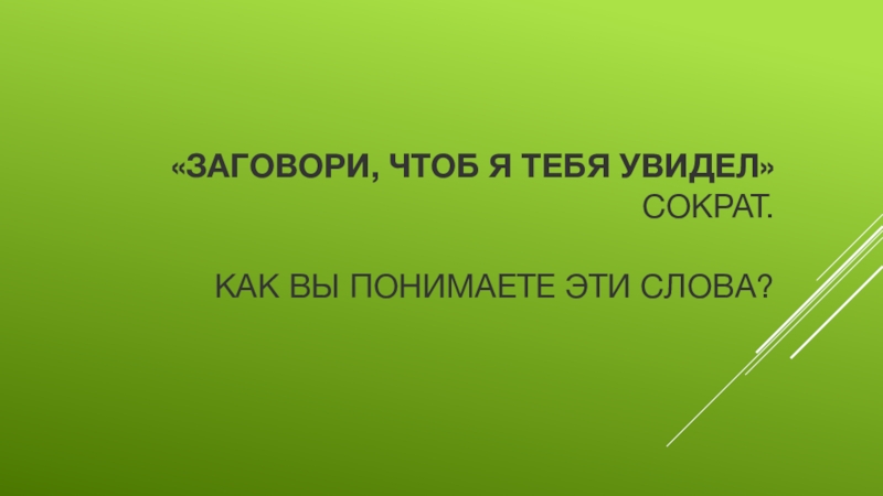 Слайд 7«Заговори, чтоб я тебя увидел» Сократ.