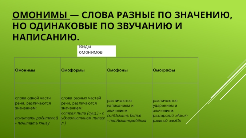 Слайд 16Омонимы — слова разные по значению, но одинаковые по звучанию и написанию.