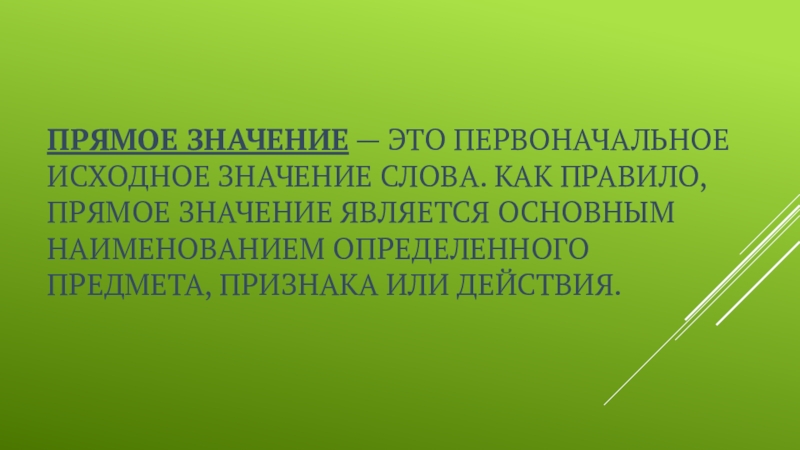 Слайд 11Прямое значение — это первоначальное исходное значение слова. Как правило, прямое значение