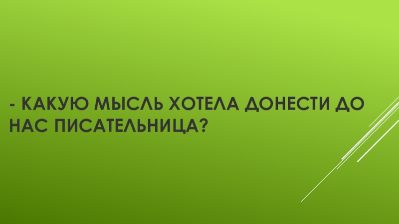 Слайд 4- Какую мысль хотела донести до нас писательница?