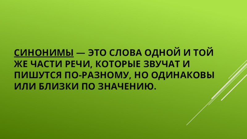Слайд 14Синонимы — это слова одной и той же части речи, которые звучат