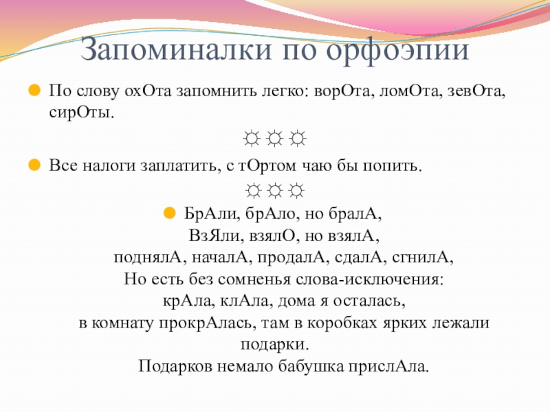 По слову охОта запомнить легко: ворОта, ломОта, зевОта, сирОты.