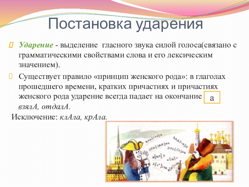 Существует правило «принцип женского рода»: в глаголах прошедшего времени, кратких причастиях и причастиях женского рода ударение всегда падает на окончание