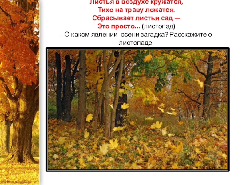(листопад) - О каком явлении осени загадка? Расскажите о листопаде.