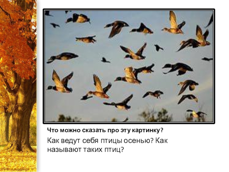 Что можно сказать про эту картинку?Как ведут себя птицы осенью? Как называют таких птиц?