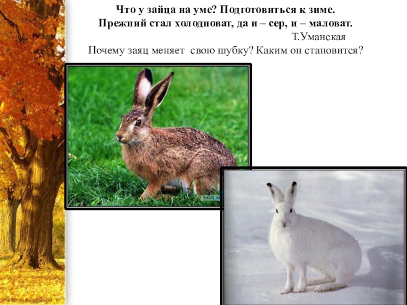 да и – сер, и – маловат. Т.Уманская Почему заяц меняет свою шубку? Каким он становится?