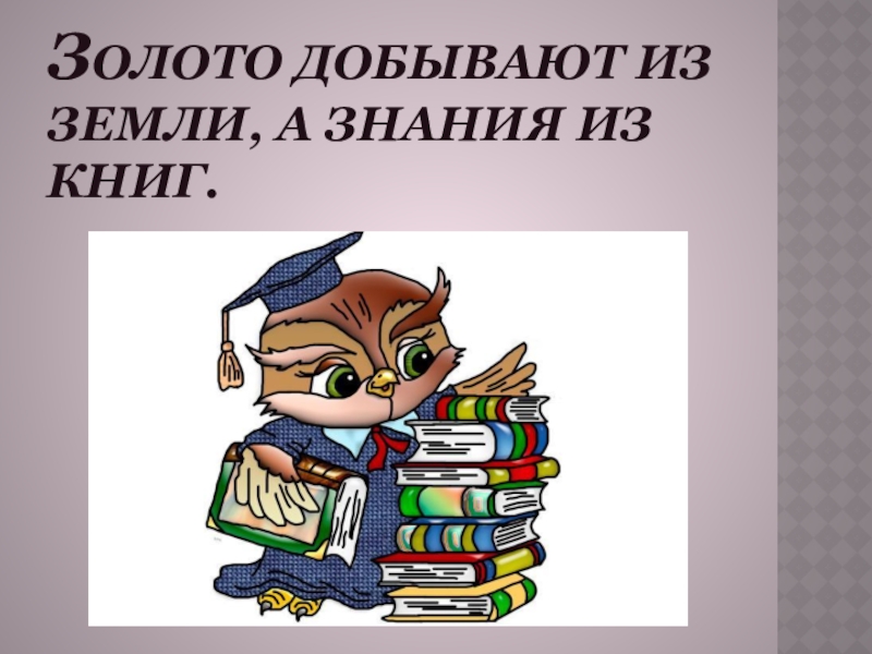 Слайд 7 Золото добывают из земли, а знания из книг.